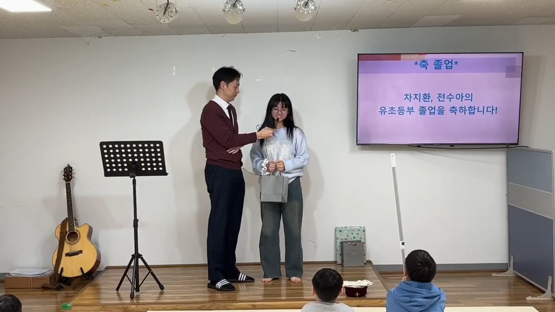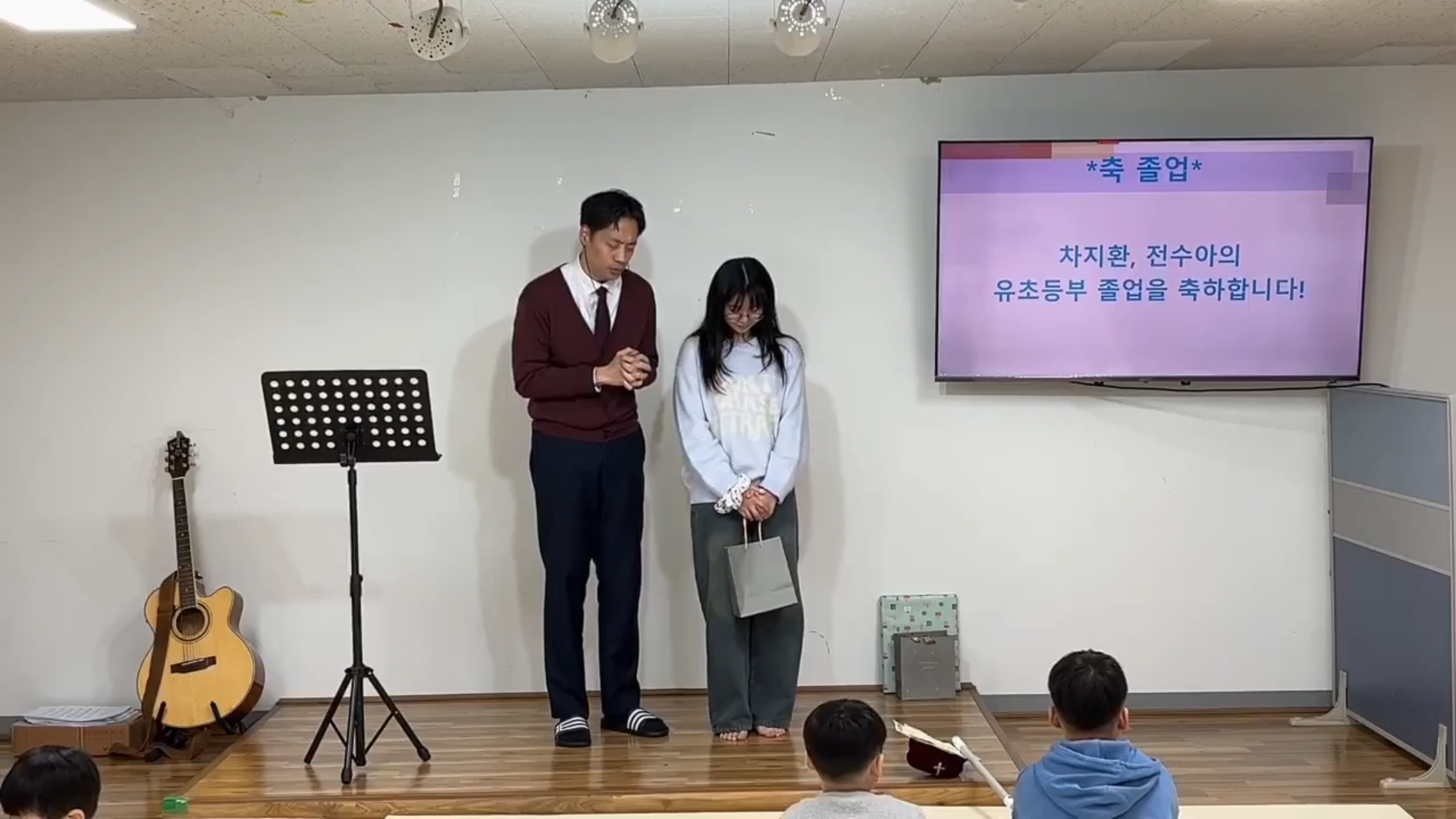 - 졸업자: 차O환, 전O아 (O환이는 독감으로 현장 예배에 불참)